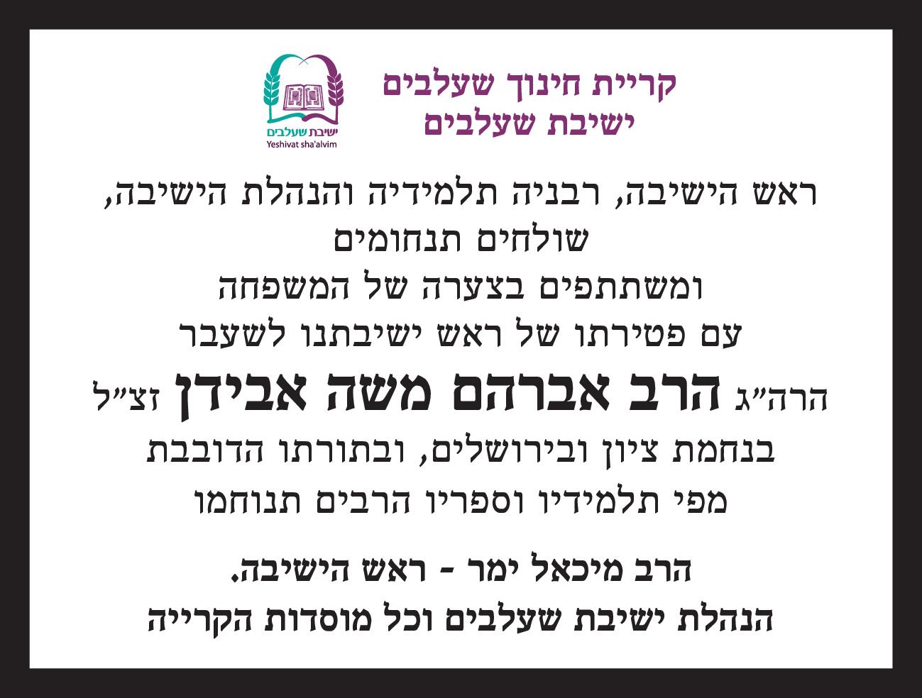 מודעת אבל- הרה"ג הרב אברהם משה אבידן זצ'ל